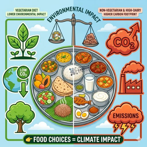 Every meal we consume has an environmental impact. In India, food production systems involve agriculture, transportation, and storage—all contributing to carbon emissions.