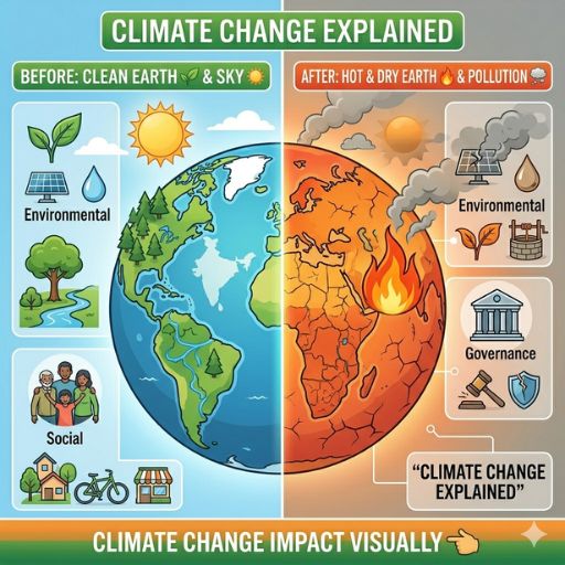 Climate change is one of the biggest global challenges today. Understanding its causes, effects, and solutions is important for individuals, businesses, and policymakers in India and around the world.