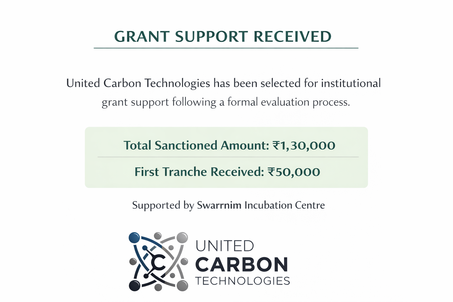 United Carbon Technologies is building climate-tech solutions focused on carbon intelligence, ESG, and sustainability. Our work has been recognized through institutional support, grant funding, and academic engagement.