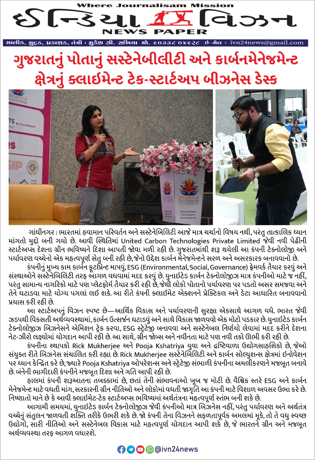 United Carbon Technologies is emerging as a climate-tech platform from India focused on carbon intelligence, ESG, and sustainability solutions. This media recognition highlights our growing impact in the climate space.